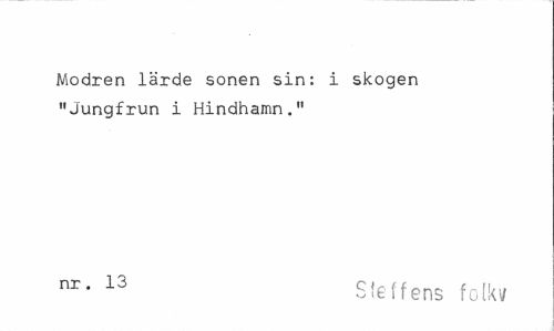 //// Modren lärde sonen sin: i skogen "Jungfrun i Hindhamn." //// nr' 13 Sfeffens folkv ////