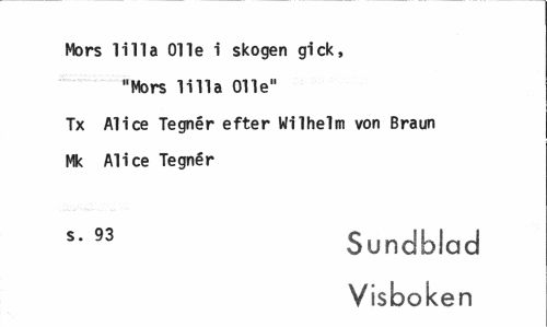 //// Mors lilla Olle i skogen gick, //// "Mors lilla Olle" Tx Alice Tegnér efter Wilhelm von Braun Mk Alice Tegnér //// s-93 Sundblad //// Visboken ////