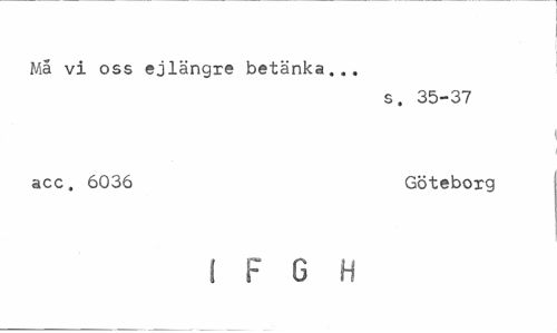 //// Ma vi oss ejlängre betänka... //// s. 35-37 //// acc. 6036 Göteborg //// I F 6 H ////