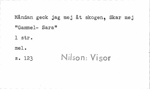 //// Måndan geck jag mej åt skogen, Skar mej "Gammel- Sara" 1 str. mel. //// s. 123 Nilson: Visor ////