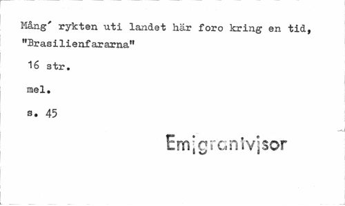 //// Mång' rykten uti landet här foro kring en tid, "Brasilienfararna" //// 16 str. mel. s. 45 //// EmjgrGnlvjsor ////