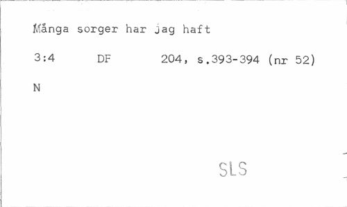 //// Många sorger har jag haft //// 3:4 DF 204, s.393-394 (nr 52) //// N //// SiS ////