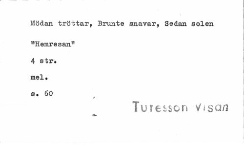 //// Mödan tröttar, Brunte snävar, Sedan solen //// "Hemresan" 4 str. mel. s. 60 //// r //// Turesson Visa/2 ////