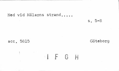 //// Ned vid Mälarns strand... //// s. 5-8 //// acc. 5815 Göteborg //// ! F G H ////