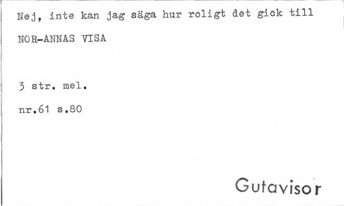 //// Nej, inte kan jag säga hur roligt det gick till HOR-ANNAS VISA //// 3 str. mel. nr.61 s.80 //// Gufaviso r ////