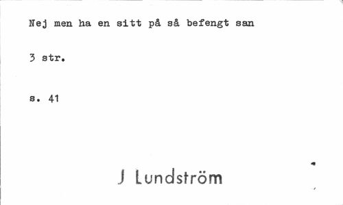 //// Nej men ha en sitt på så befengt san 3 str. //// s. 41 //// J Lundström ////