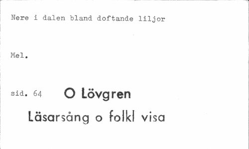 //// Nere i dalen bland doftande liljor Mel. //// sid. 64 O Lövgren //// Läsarsång o foikl visa ////