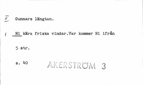 //// Gunnars längtan. I Ni kära friska vindar.Var kommer Ni ifrån 5 str. //// s. 4o k y rncin k i //// r°\s\Li\0 I KL//VI O ////