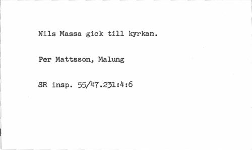 //// Nils Massa gick till kyrkan. Per Mattsson, Malung SR insp. 55/47.231:4:6 ////