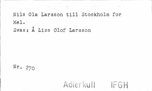//// Nils Ola Larsson till Stockholm for Mel. //// Svas: A Liss Olof Larsson //// Nr- 270 //// Adterkull IFGH ////