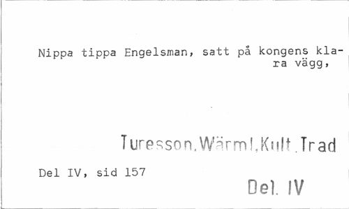 //// Nippa tippa Engelsman, satt på kongens klara vägg, //// Turesson.WärmKKnlt .Trad //// Del IV, sid 157 //// Del. IV ////