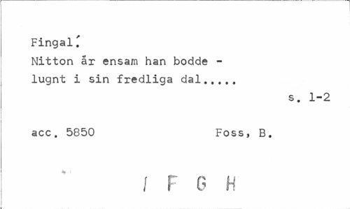 //// Fingal^ //// Nitton år ensam han bodde -lugnt i sin fredliga dal... //// s. 1-2 //// acc. 5850 Foss, B. //// ! F G H ////