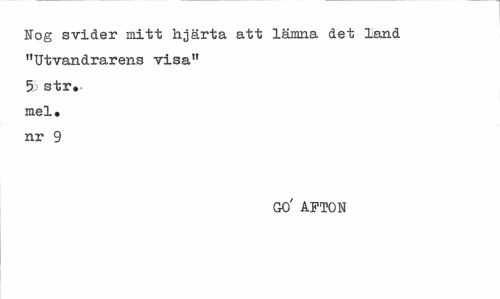 //// Nog svider mitt hjärta att lämna det land "Utvandrarens visa" 5 str. mel. nr 9 //// GO' AFTON ////
