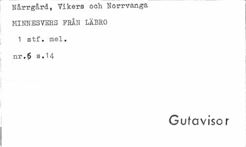 //// Nårrgärd, ViKers ocn MorrvMiga MINNESVERS FRÅN LÄBRO //// 1 stf. mel. nr.$ s.14 //// Gufavisor ////