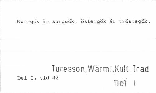 //// Norrgök är sorggök, östergök är tröstegök, //// Tures son,Wärml,Kult .Träd //// Del I, sid 42 //// Del. \ ////