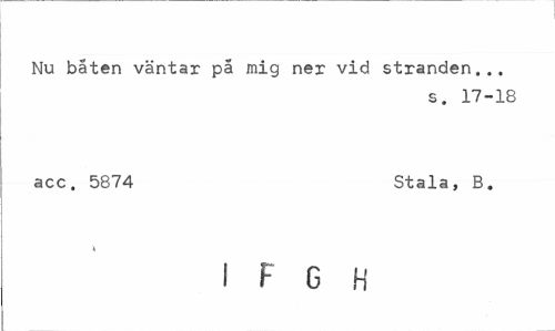 //// Nu båten väntar på mig ner vid stranden... //// s. 17-18 //// acc. 5874 Stala, B. //// I F G H ////