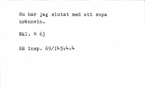 //// Nu har jag slutat med att supa brännvin. //// Ekl. B 63 //// SR insp. 69/lk5-.kik ////