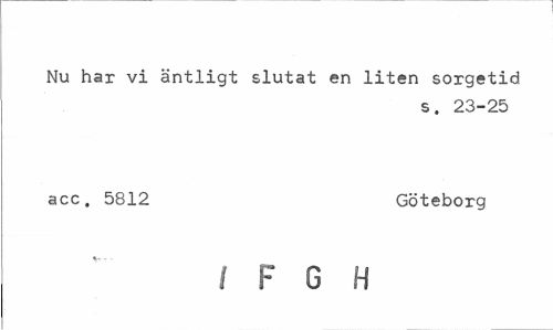 //// Nu har vi äntligt slutat en liten sorgetid //// s. 23-25 //// acc. 5812 Göteborg //// t F G H ////