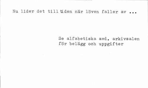 //// Nu lider det till tiden när löven faller av ... //// Se alfabetiska avd. arkivsalen för belägg och uppgifter ////