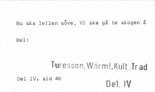 //// Nu ska lellen sove. Vi ska gå te skogen å Mel: //// Turesson,Wärml,Kult.Trad //// Del IV, sid 48 - //// Del. IV ////