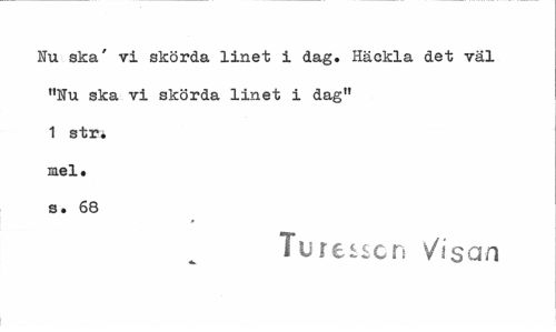 //// Nu ska' vi skörda linet i dag. Häckla det väl "Nu ska vi skörda linet i dag" 1 str* mel. s. 68 //// Tu ressen Visan ////