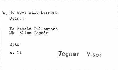 //// Hu t Nu sova alla barnena Julnatt //// Tx Astrid Gullstrarid Mk Alice Tegnér //// 2str //// s- 61 [Tegnér Visor ////
