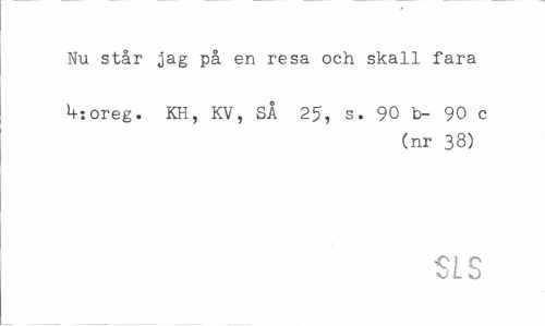 //// Nu står jag på en resa och skall fara //// oreg. KH, KV, SÅ 25, s. 90 b- 90 c //// (nr 38) //// SLS ////
