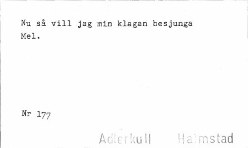 //// Nu så vill jag min klagan besjunga Mel. //// Nr I77 //// A dier ku II Halmstad ////