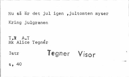 //// Nu sä är det jul igen »jultomten myser Kring julgranen //// T.S A,T Mk Alice Tegnér //// 3str Tegnér Visor //// s, 40 ////