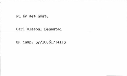 //// Nu är det höst. //// Carl Olsson, Benestad //// SR insp. 57/10.617:410 ////