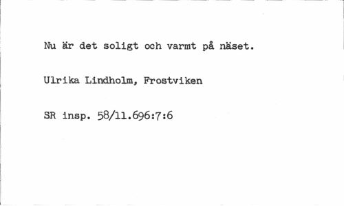 //// Nu är det soligt och varmt på näset. Ulrika Lindholm, Prostviken SR insp. 58/11.696:7:6 ////