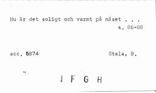 //// Nu är det soligt och varmt på näset . , . //// s. 86-88 //// acc. 5874 Stala, B. //// I F G H ////