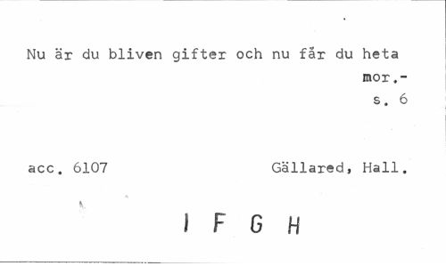 //// Nu är du bliven gifter och nu far du heta //// mor //// s. 6 //// acc. 6107 Gällared, Hall. //// I F G H ////