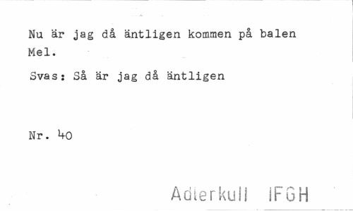 //// Nu är jag då äntligen kommen på balen Mel. //// Svas: Så är jag då äntligen Nr. l+O //// Ädle r ku 11 iFGH ////