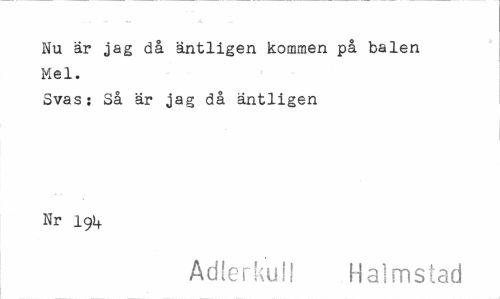 //// Nu är jag då äntligen kommen på balen Mel. //// Svasj Så är jag då äntligen Nr 19^ //// Adlerkull Halmstad ////