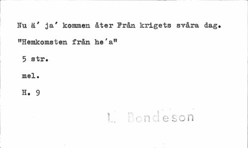 //// ITu ä' ja' kommen åter Från krigets svåra dag. "Hemkomsten från he'a" 5 str. mel. H. 9 //// l, bondeson ////