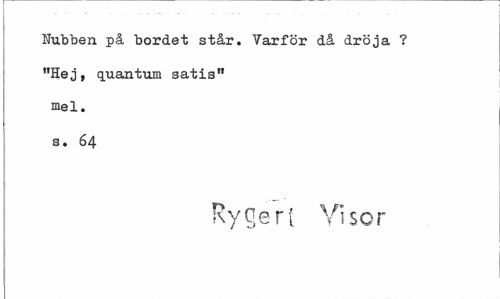 //// Nubben på bordet står. Varför då dröja ? "Hej, quantum satis" mel. //// s. 64 //// Ry^erl Visor ////