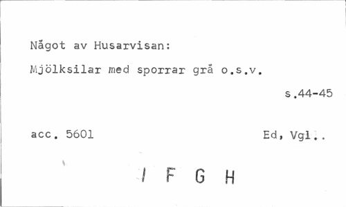 //// Något av Husarvisan: Mjölksilar med sporrar grå o.s.v. //// s.44-45 //// acc. 5601 Ed, Vgl.. //// I F G H ////