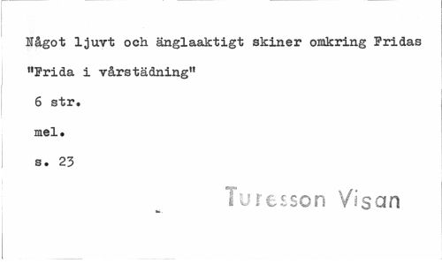 //// Något ljuvt och änglaaktigt skiner omkring Fridas "Frida i vårstädning" 6 str. mel. s. 23 //// Turesson Visan ////