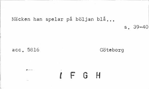 //// Näcken han spelar på böljan blå... //// s. 39-4C //// acc. 5816 Göteborg //// f F G H ////