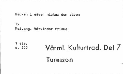 //// I\!äck8n i säven nickar äen räven Tx //// Mel.ang. l/årvindar friska 1 str. //// s. 200 Värml. Kulturtrad. Del 7 Turesson ////