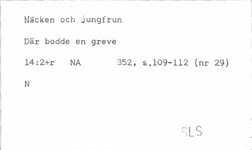 //// Näcken och jungfrun Där bodde en greve //// 14:2+r NA 352, s.109-112 (nr 29) //// N //// SLS ////
