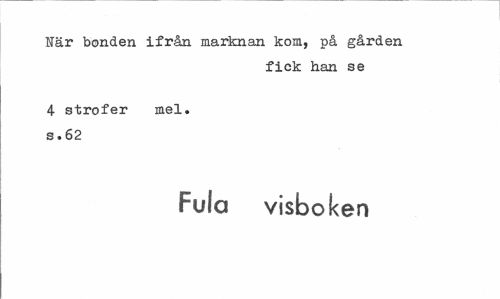 //// Nar bonden ifrån marknan kom, på gården //// fick han se //// 4 strofer mel. s.62 //// Fula visboken ////
