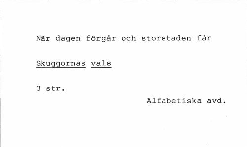 //// När dagen förgår och storstaden får Skuggornas vals 3 str. //// Alfabetiska avd. ////