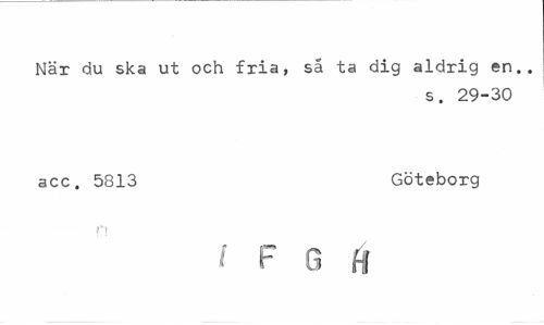 //// När du ska ut och fria, så ta dig aldrig en.. //// s. 29-30 //// acc. 5813 Göteborg //// ff //// l F G H ////