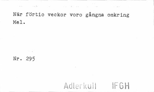 //// När förtio veckor voro gångna omkring //// Mel. //// Nr. 295 //// Adlerkuli IFGH ////