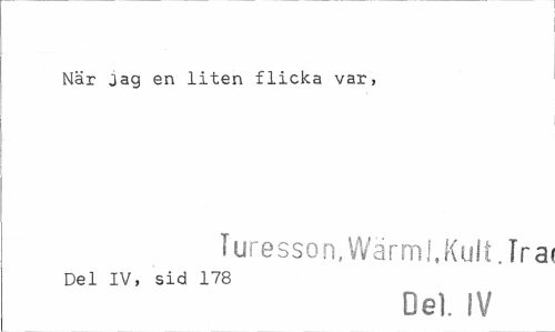 //// När jag en liten flicka var, //// Turesson, Wärml.Ku It.Tra //// Del IV, sid 178 //// Del. IV ////