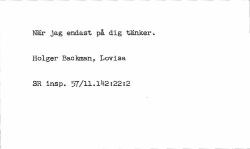 //// När jag endast på dig tänker. Holger Backman, Lovisa SR insp. 57/11.142:22:2 ////