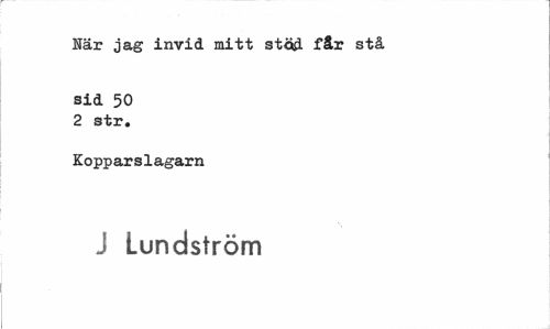 //// Kär jag invid mitt stöd får stå //// sid 50 2 str. //// Kopparslagarn //// J Lundström ////