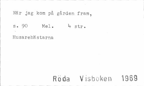 //// När jag kom på gården fram, //// s. 90 Mel. k str. Husarehästarna //// Roda Visboken 1969 ////